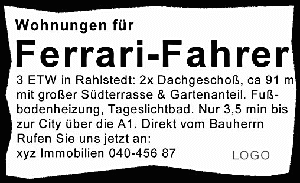 Große Anzeigen fallen auf. Ganz sicher. Man hat viel Platz für ein ausführliches Angebot. Kann Bilder und Fotos unterbringen und so sein Angebot wirklich von allen Seiten ins Rampenlicht heben. Aber große Anzeigen sind noch lange keine guten, gelungenen Anzeigen. Es kommt schließlich auf den Inhalt an - nicht auf Zentimeter.