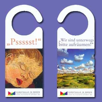 Die Kunsthalle Emden ließ Türanhänger mit Kunstmotiven produzieren und stellte sie Hotels in ihrem Einzugsgebiet kostenlos zur Verfügung. Die Vorteile dieser ungewöhnlichen Aktion: